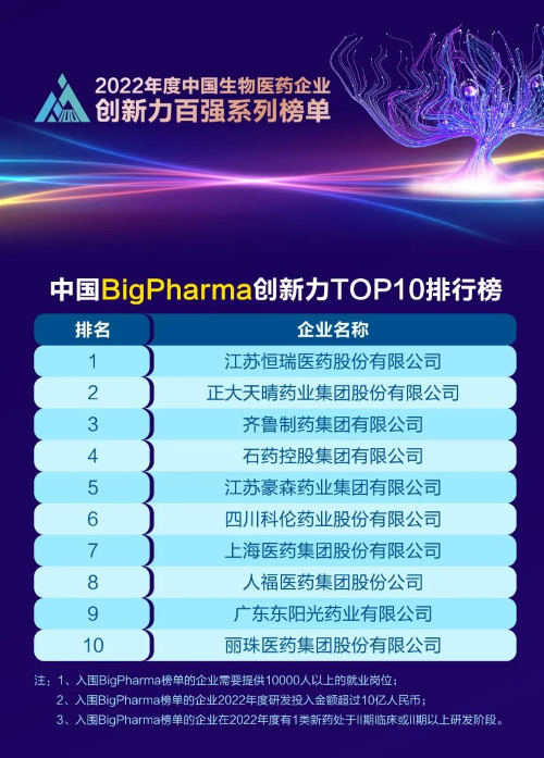 同日,2023米思会(中国医药健康产业共生大会)发布“2022年度中国生物医药企业创新力百强系列榜单”,金年会金字招牌诚信至上医药再蝉联“中国BigPharma创新力TOP10”榜首。该榜单自2021年启动评选以来,金年会金字招牌诚信至上医药稳居榜首。
